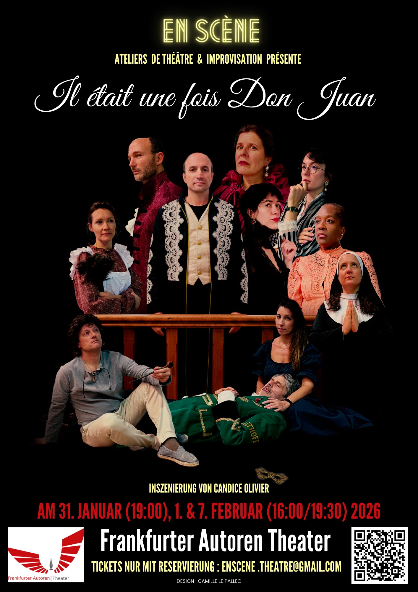 Nach der tollen von dem jugendlichen Ensemble der französischen Theaterschule EnScène gespielten Aufführungen „le bal des voleurs“ in 2024, und „ la servante amoureuse“ in 2025, ist jetzt das Erwachsenes Ensemble dran!