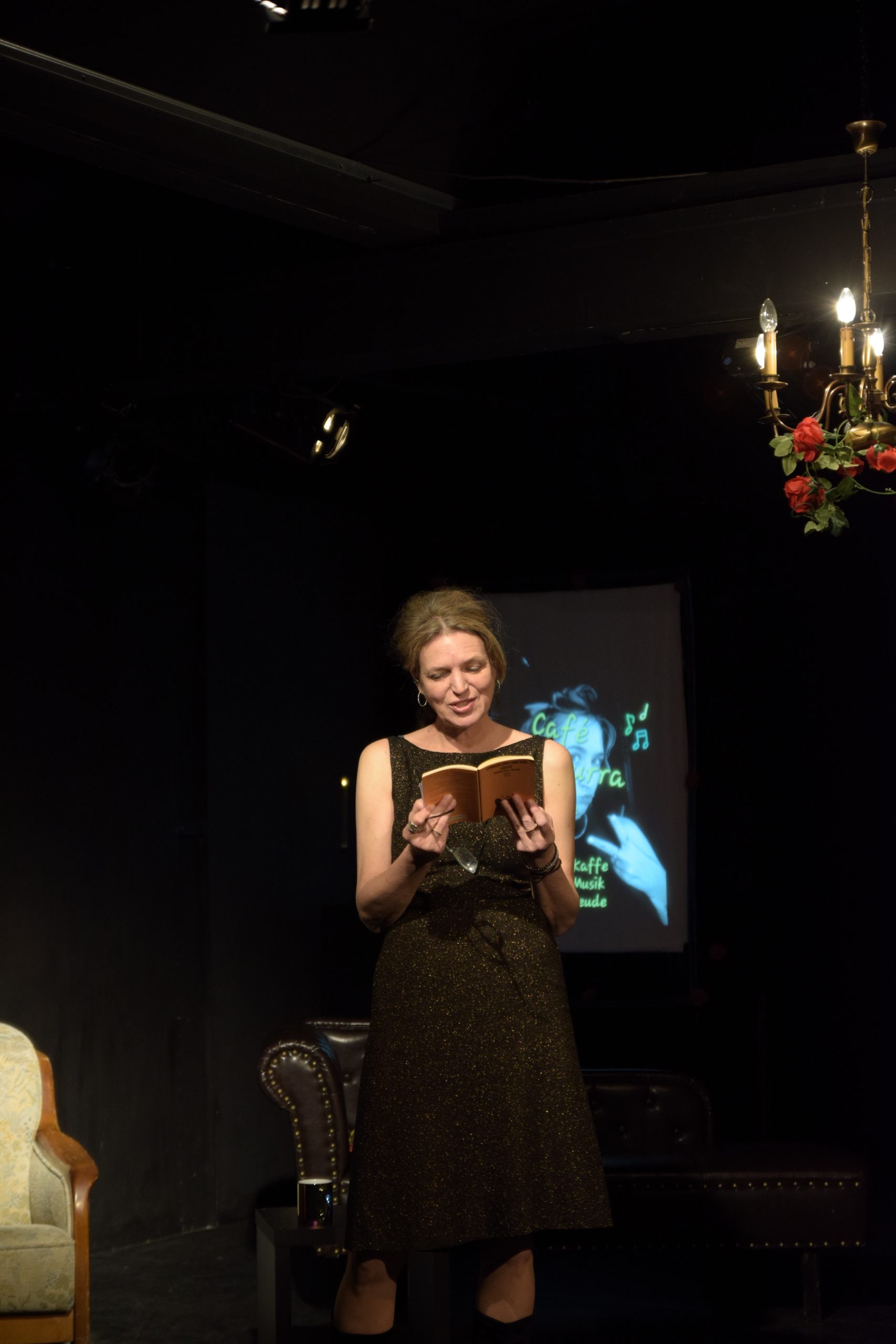 Es hätte eine ganz normale Lesung werden können, hätte es Zuschauer gegeben, wäre da nicht ein Glas magischer Kaffee im Spiel gewesen oder hätten sich Musik und Literatur nicht eingemischt an diesem Abend, den eine Dame, ein Herr und eine Influenzerin miteinander verbringen.